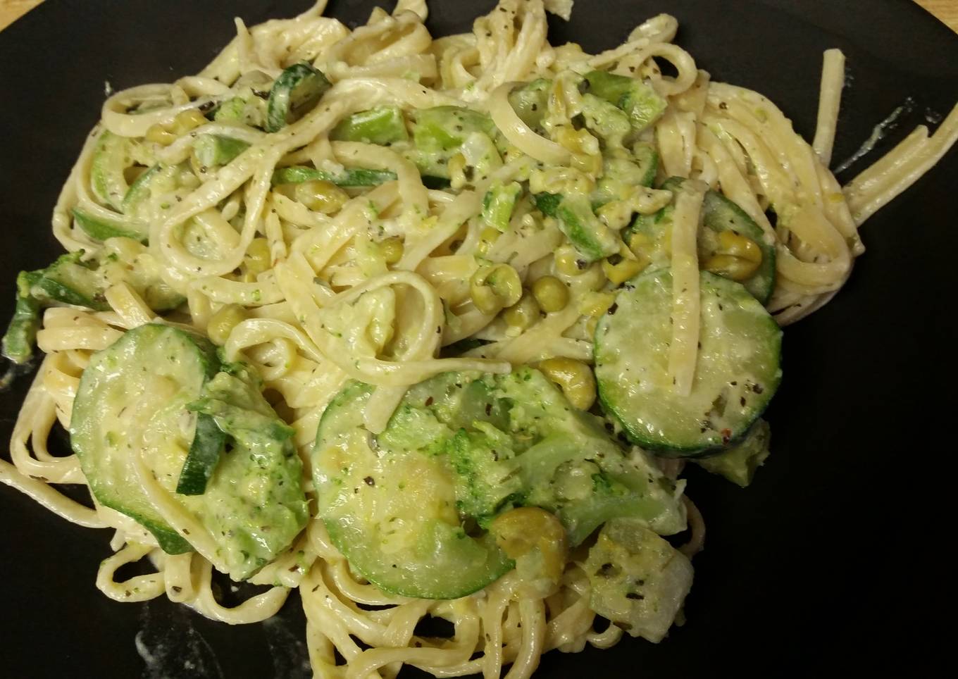 - Melt butter in same pan. Stir in cream & cheese. Cook over medium heat; stirring constantly, until smooth. Add linguini. Toss to coat. Stir in vegetables. Heat gently until hot & serve.