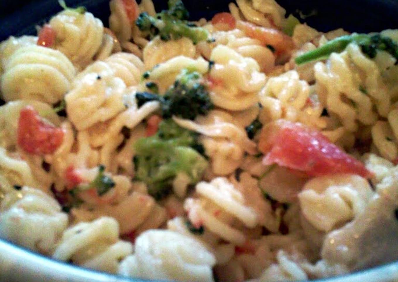 - pour the pasta ontop of the sauce mixture and stir very well. if you need to add a little olive oil. i added in about a quarter of a cup to mine to make the sauce go farther