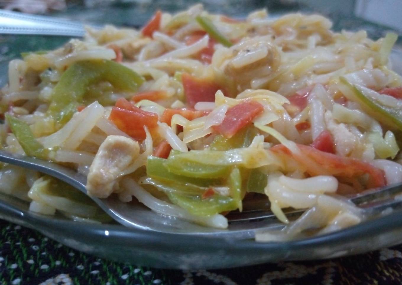 - Ab is mein chilli sauce, ketchup kali mirch powder daal kar bhoon lein