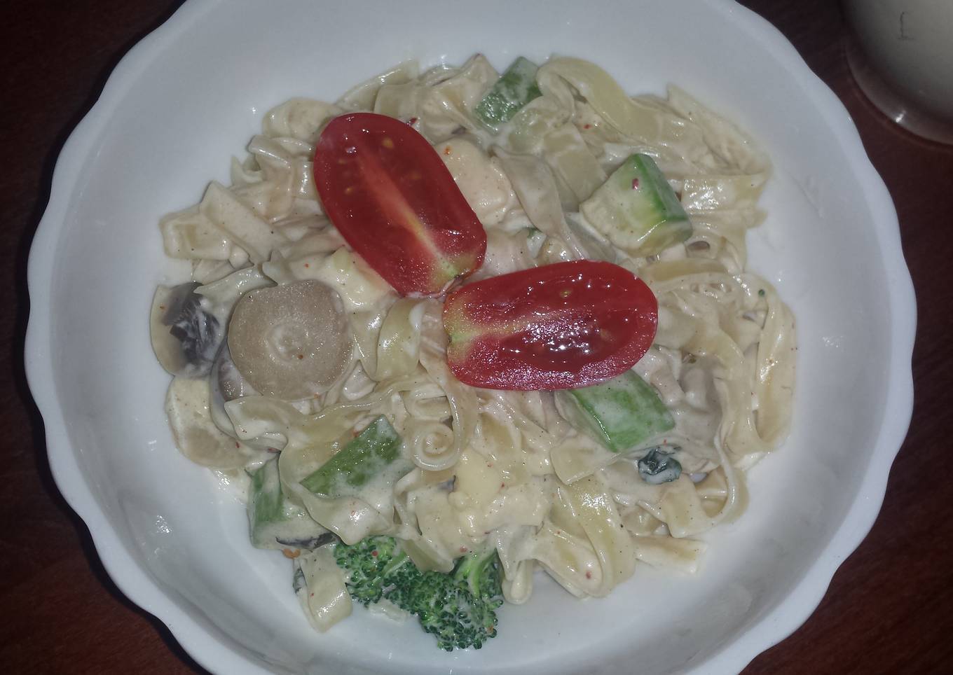 - Fry zucchini, mushrooms and garlic on the olive oil, couple minutes